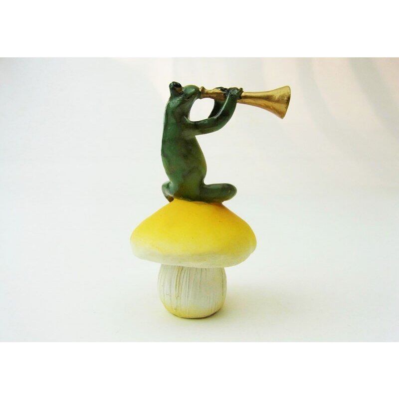 カエルオブジェ キノコ乗り蛙ミュージシャン トランペット