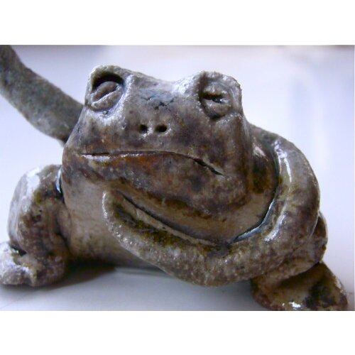 陶蛙(手びねり/常滑焼) 約80x55x45mm 四股/相撲の動作。邪気を払う動作。