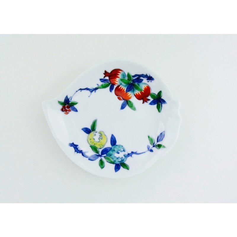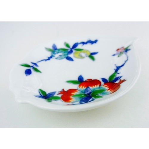 かわいらしい桃の形に果物の絵付けの豆皿。
