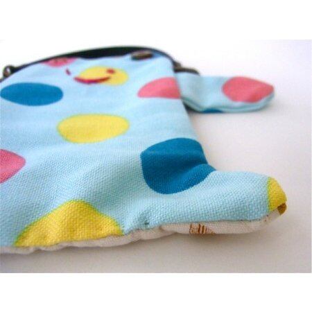 モバイル、眼鏡、小物入れミニケース。役立つ楽しいカエルです。 綿、ボタン、他 持ち手取り外し可 開口部マジックテープ付き 本体/190x170mm ハンドメイド作品