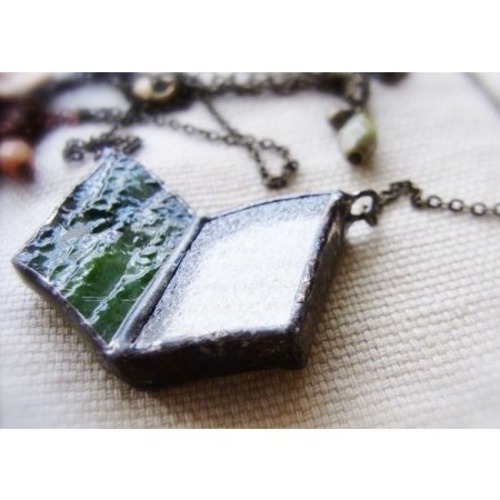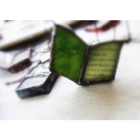 ハンドメイド ペンダント ステンドグラス/ブック グリーン
