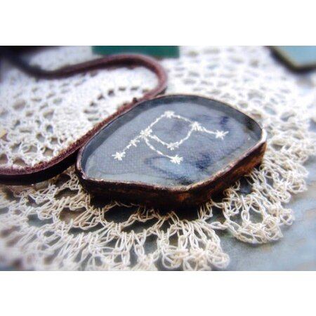 ハンドメイド 星座ペンダント ステンドグラス/手刺繍 天秤座
