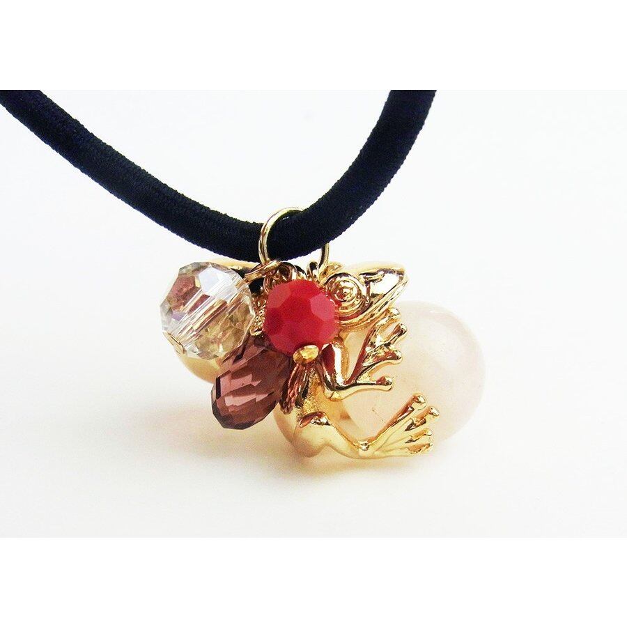 ヘアゴム 宝石カエル ローズクオーツ ピンク
