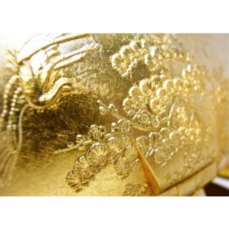 格調高い金屏風と黒敷き台のセット。記念品、贈り物にもお薦めいたします。
