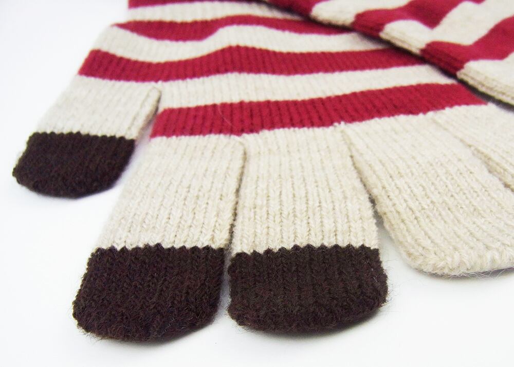 スマホ対応 ロング手袋 ボーダー エンジベージュ