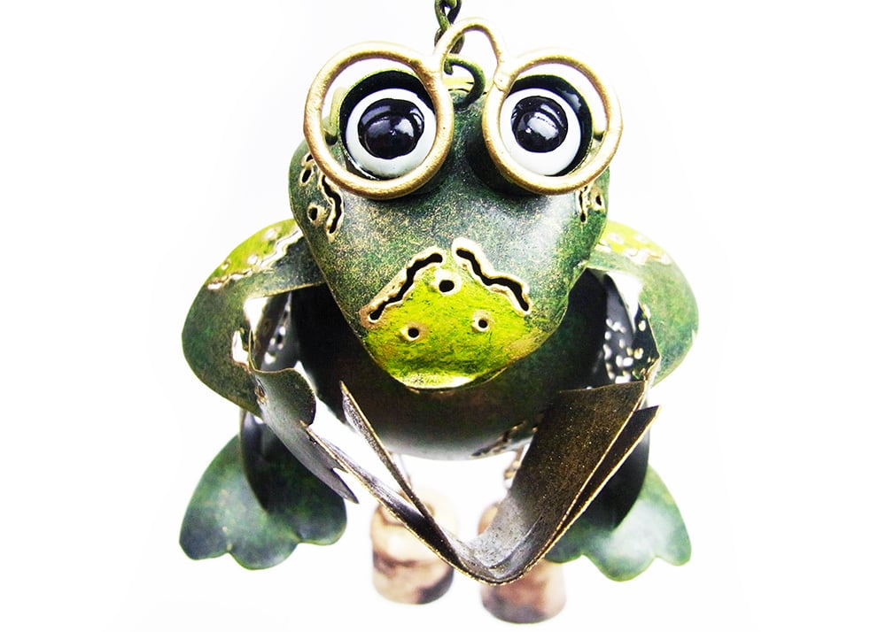 ブリキベル メガネ勉強カエル フロッグウィンドチャイム