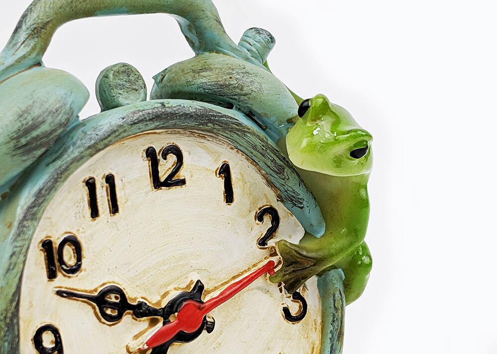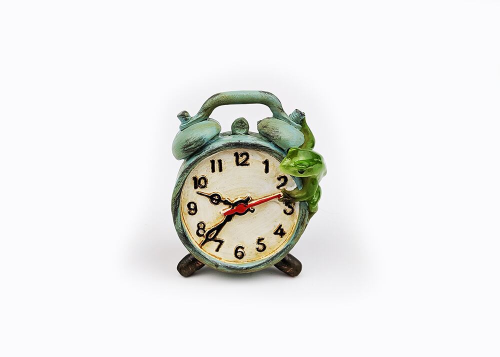カエルオブジェ アンティーク調目覚まし時計と蛙