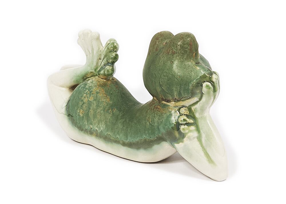 蛙の陶器置物。夢見心地な表情に癒されそうです。 お庭でもお部屋でも。 約124x218x71mm made in china