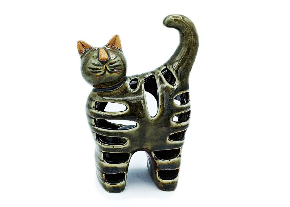 香炉 陶器猫 約143x89x58mm made in china どこか素朴でフォークロア調の猫の香炉。 置物、香炉、キャンドルホルダーに。 もう一回り大きめの「香炉 陶器猫 大」もございます。