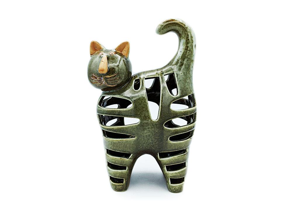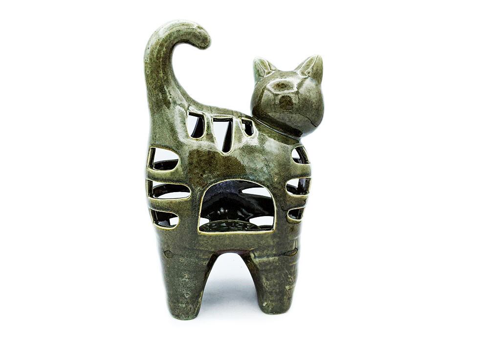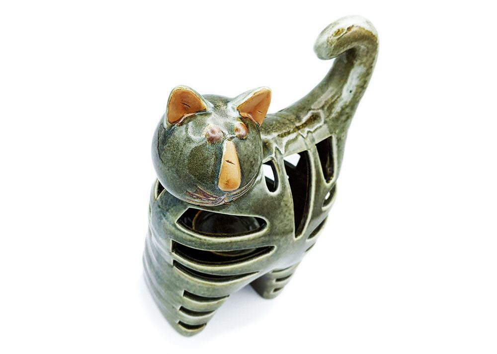 香炉 陶器猫 約135x147x84mm made in china どこか素朴でフォークロア調の猫の香炉。 置物、香炉、キャンドルホルダーに。 もう一回り小さめの「香炉 陶器猫 小」もございます。