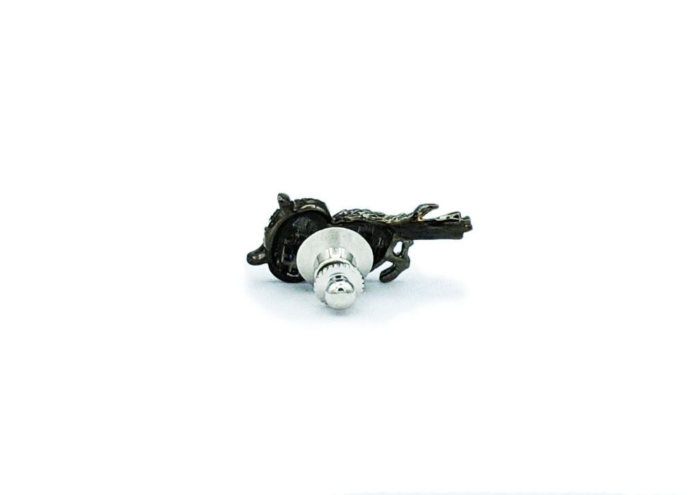 燻したメタルべースに神秘的な緑色の目。知性と謎めいた雰囲気が魅力のふくろうタックピン。