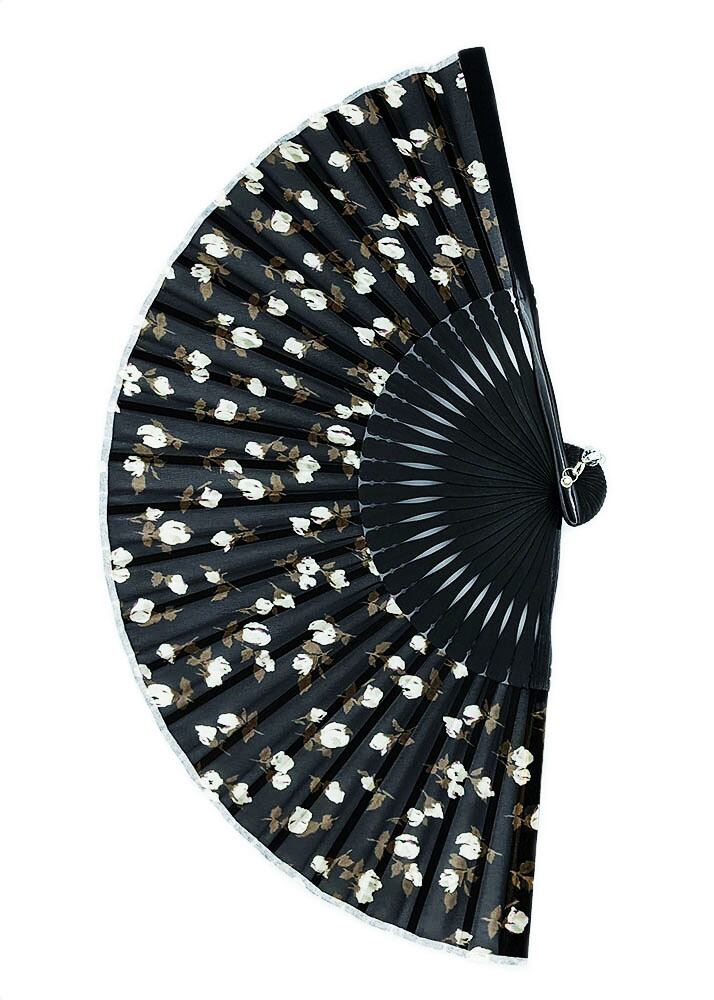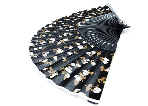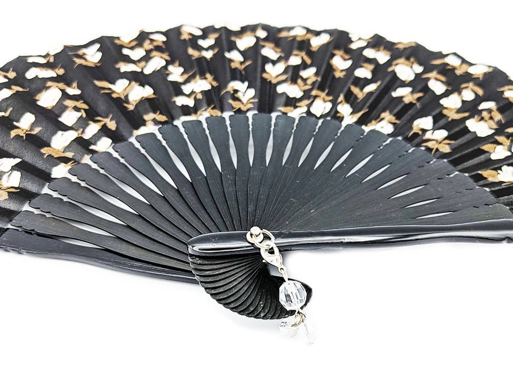 シックな黒と優しい花柄。大人可愛い扇子です。