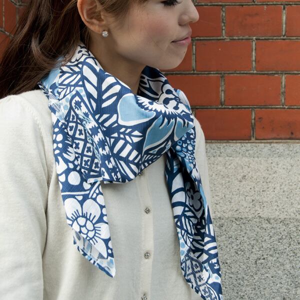北欧デザインの「コトノワ風呂敷」は、洋服にもインテリアにも良く合います。