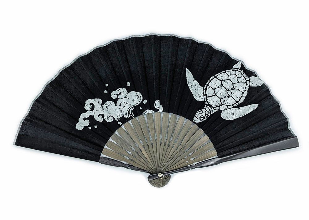 扇子 袋付き メンズ扇子 縁起のいい扇子 亀/黒