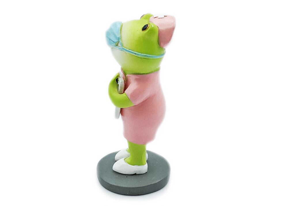 カエル置物 お仕事中マスクカエルさん 看護師水色