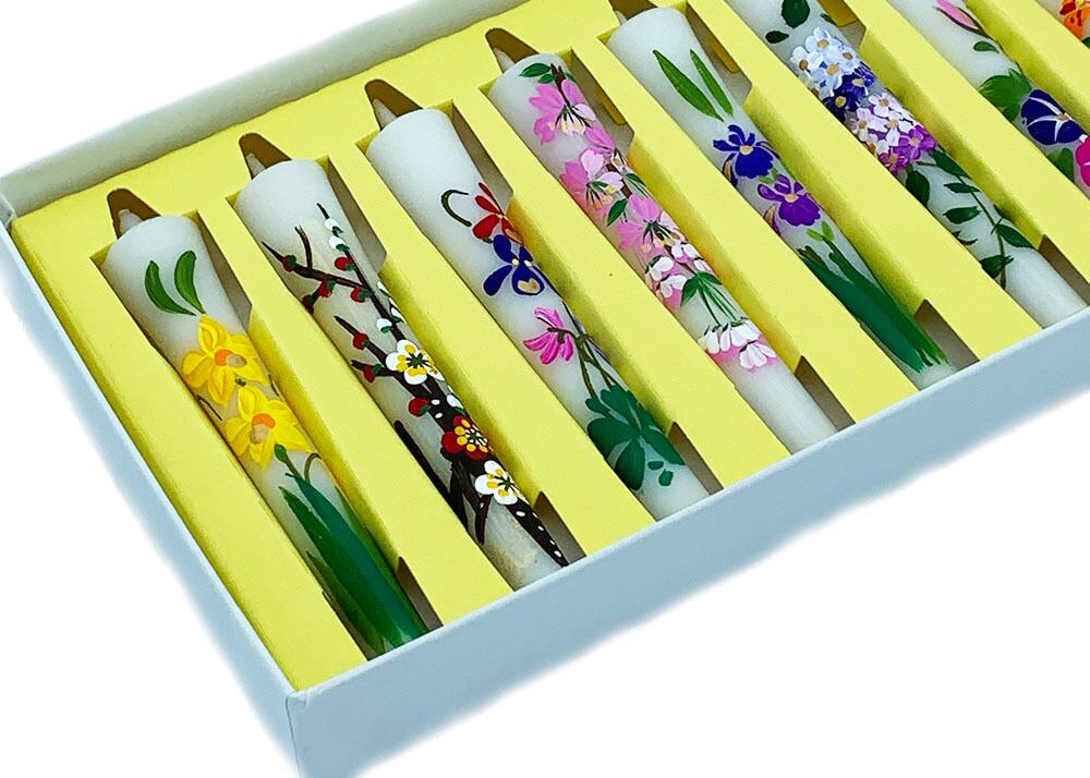 手描き絵付き和ろうそく「四季の花」3号12本セット